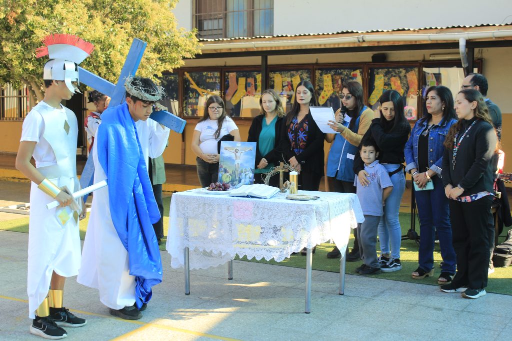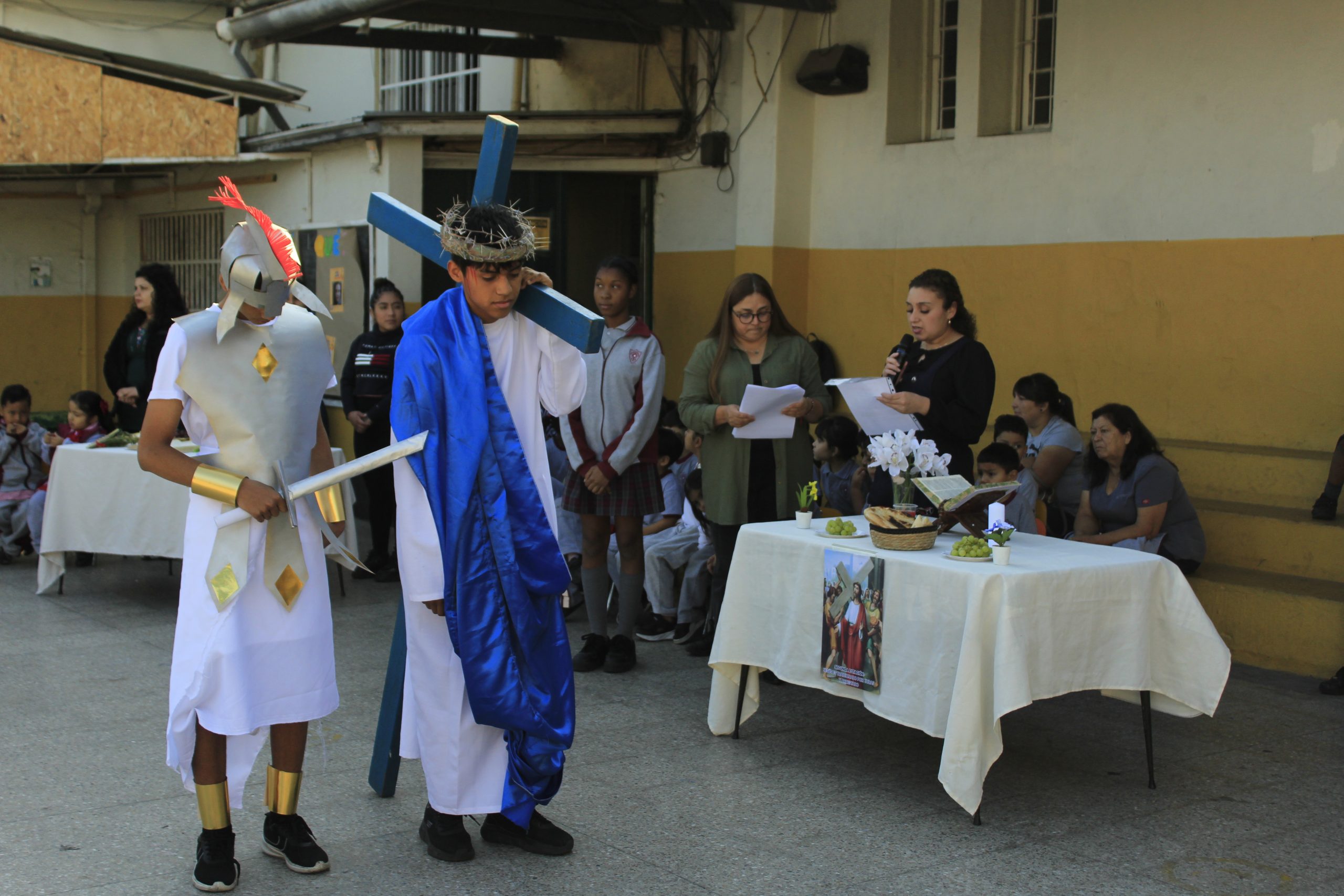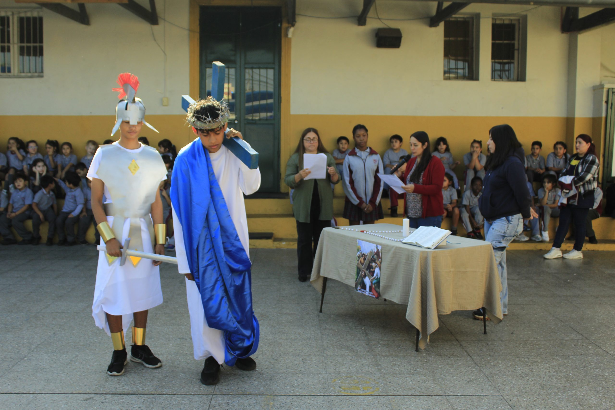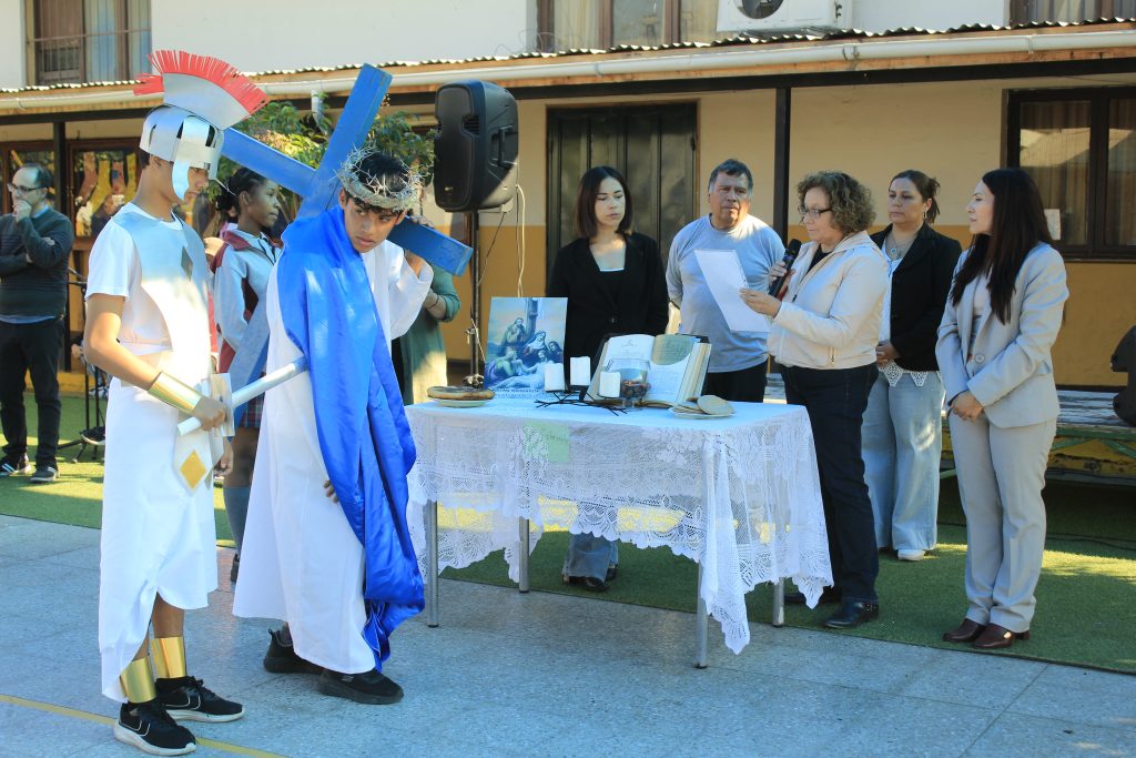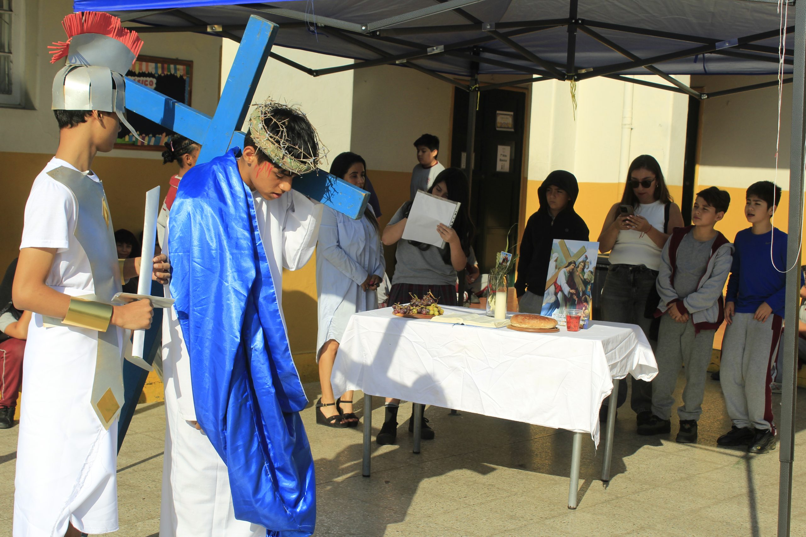 En el marco de la celebración de la Semana Santa, nuestra comunidad educativa vivió una significativa jornada de reflexión a través de la representación del Vía Crucis. En esta actividad, cada curso y los distintos estamentos de la escuela asumieron con compromiso y respeto la preparación de una de las estaciones de Jesucristo, promoviendo el trabajo colaborativo, la empatía y el sentido de comunidad. Este espacio permitió a nuestros estudiantes y funcionarios conectar con el mensaje de amor, sacrificio y esperanza, fortaleciendo los valores que nos unen como comunidad educativa.