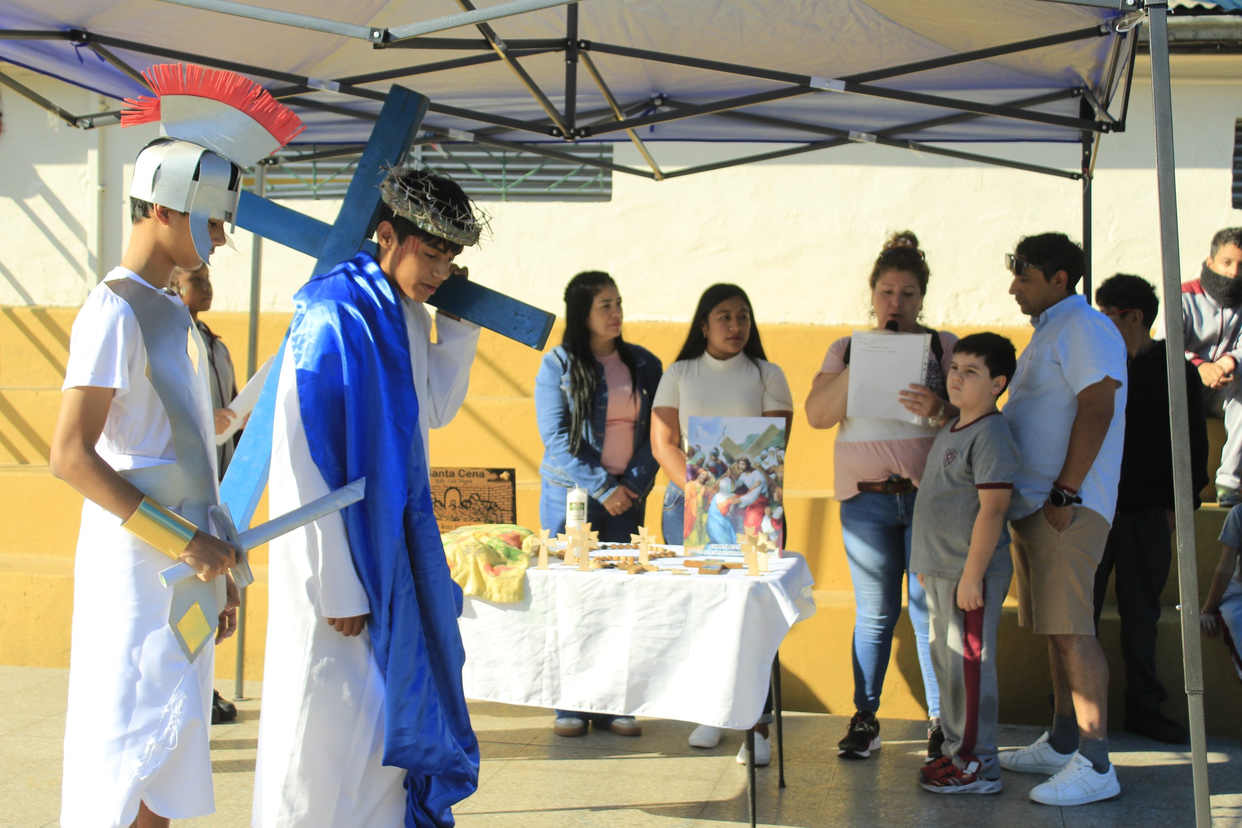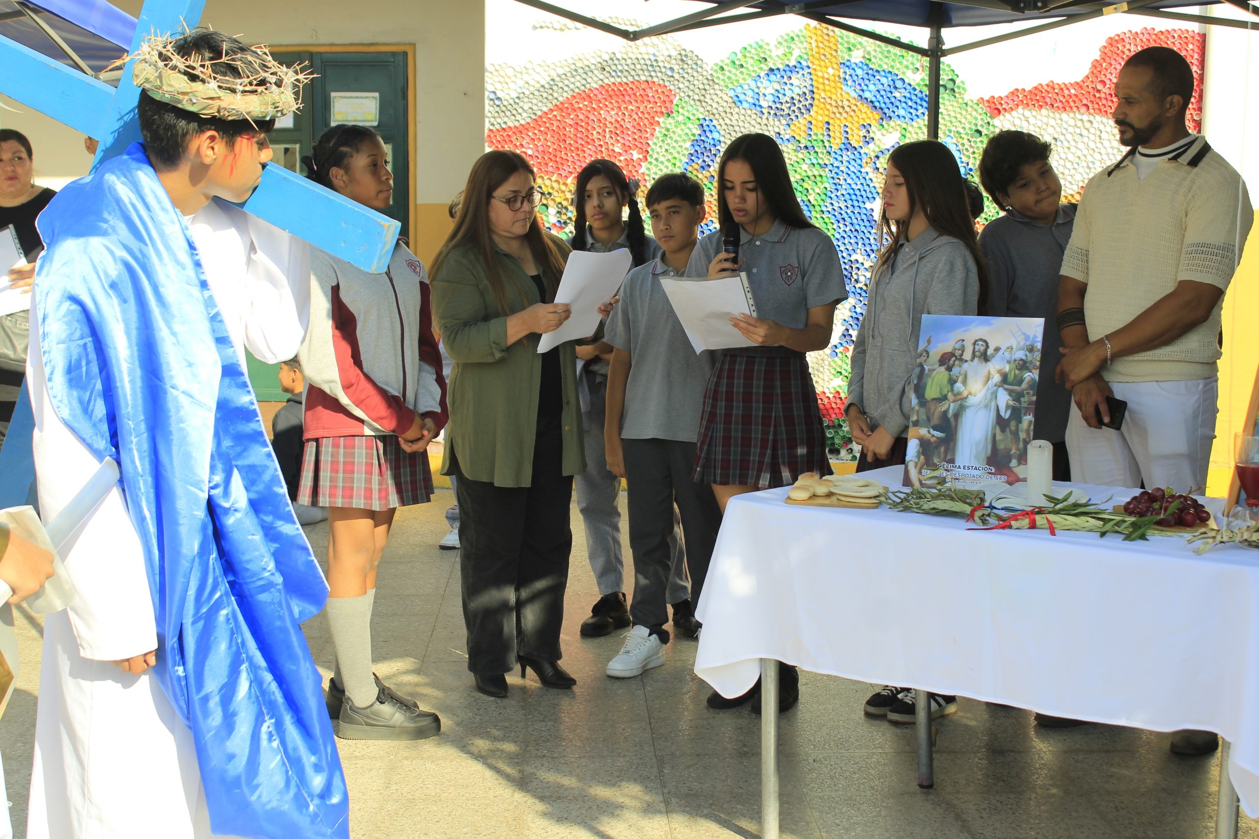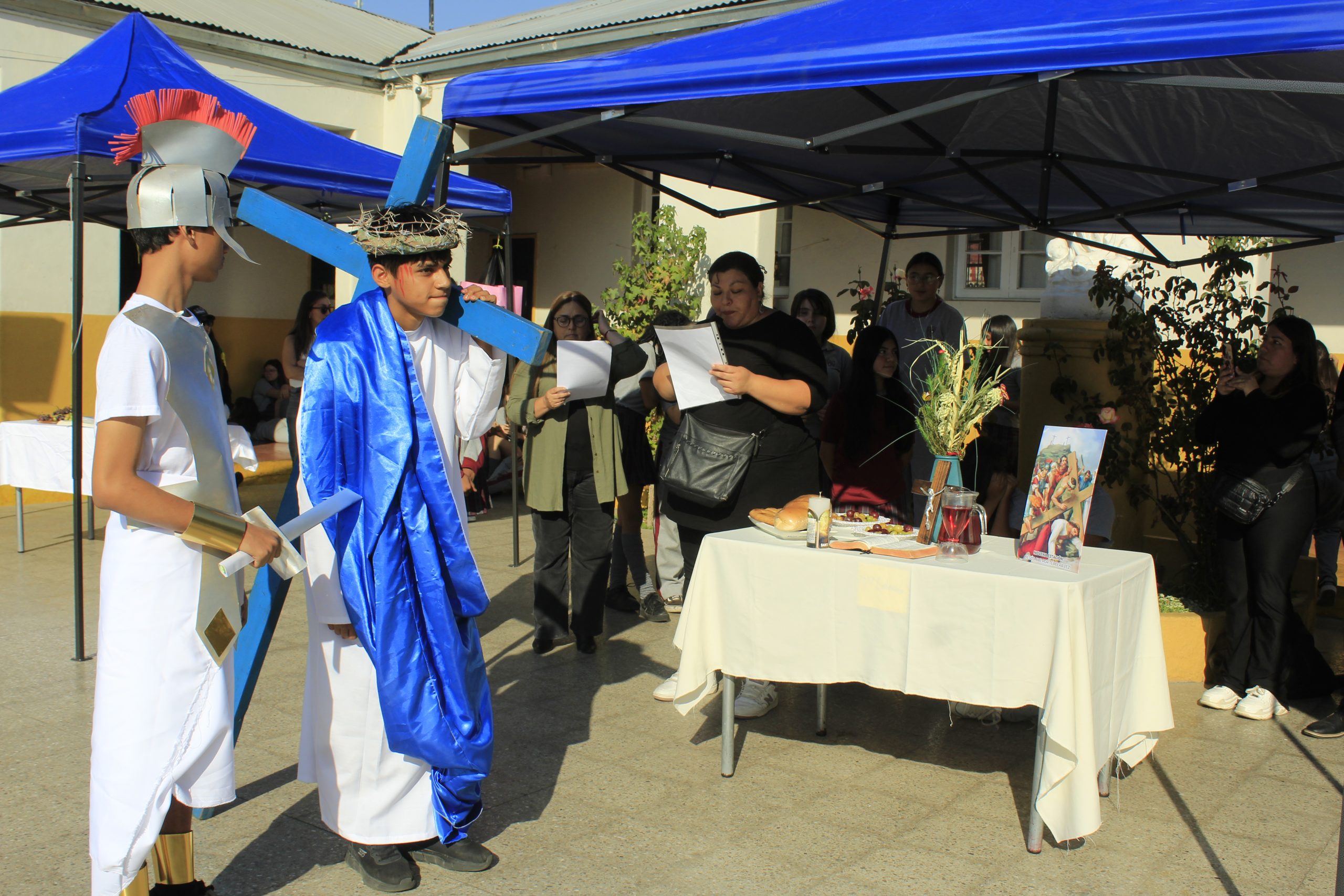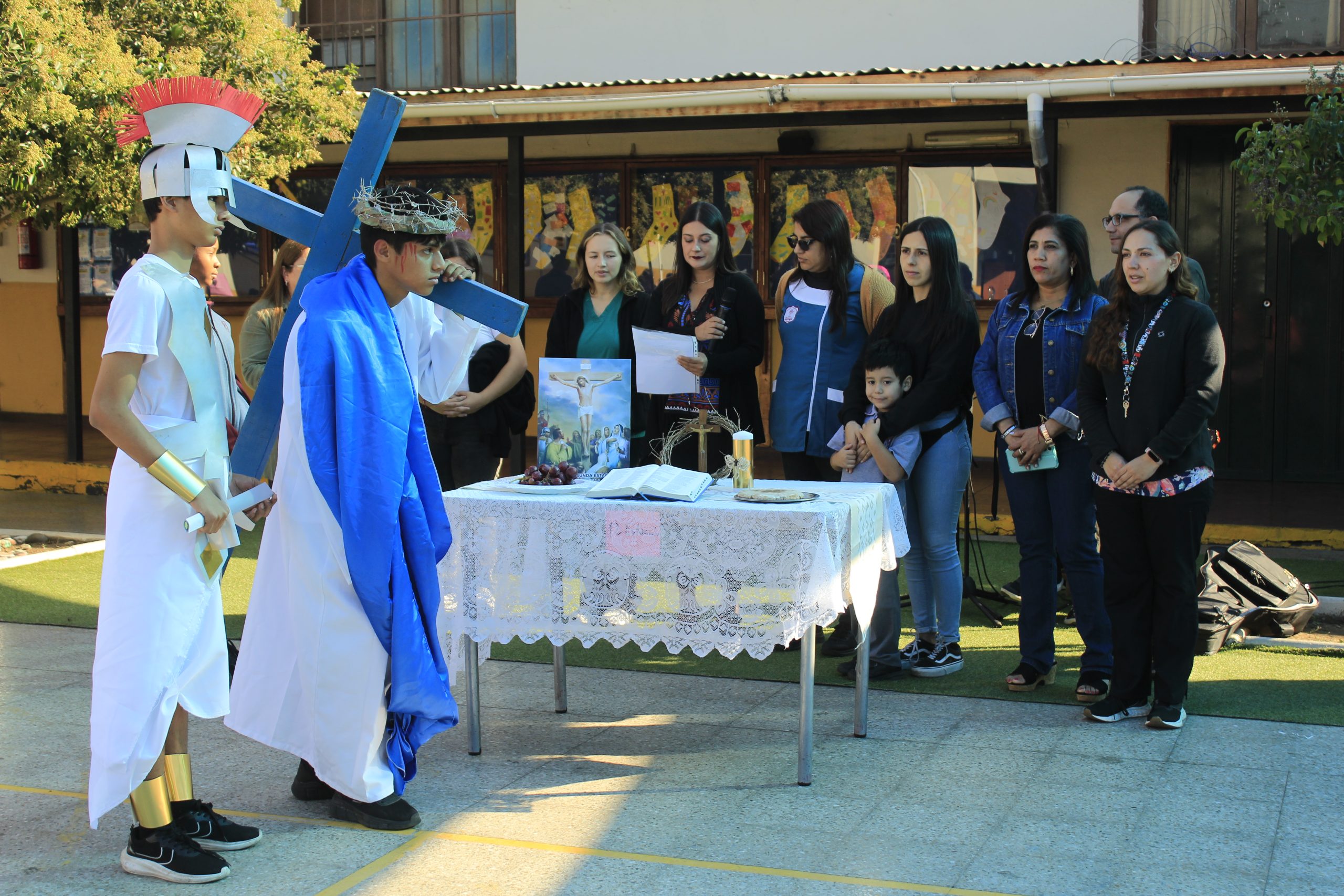 En el marco de la celebración de la Semana Santa, nuestra comunidad educativa vivió una significativa jornada de reflexión a través de la representación del Vía Crucis. En esta actividad, cada curso y los distintos estamentos de la escuela asumieron con compromiso y respeto la preparación de una de las estaciones de Jesucristo, promoviendo el trabajo colaborativo, la empatía y el sentido de comunidad. Este espacio permitió a nuestros estudiantes y funcionarios conectar con el mensaje de amor, sacrificio y esperanza, fortaleciendo los valores que nos unen como comunidad educativa.