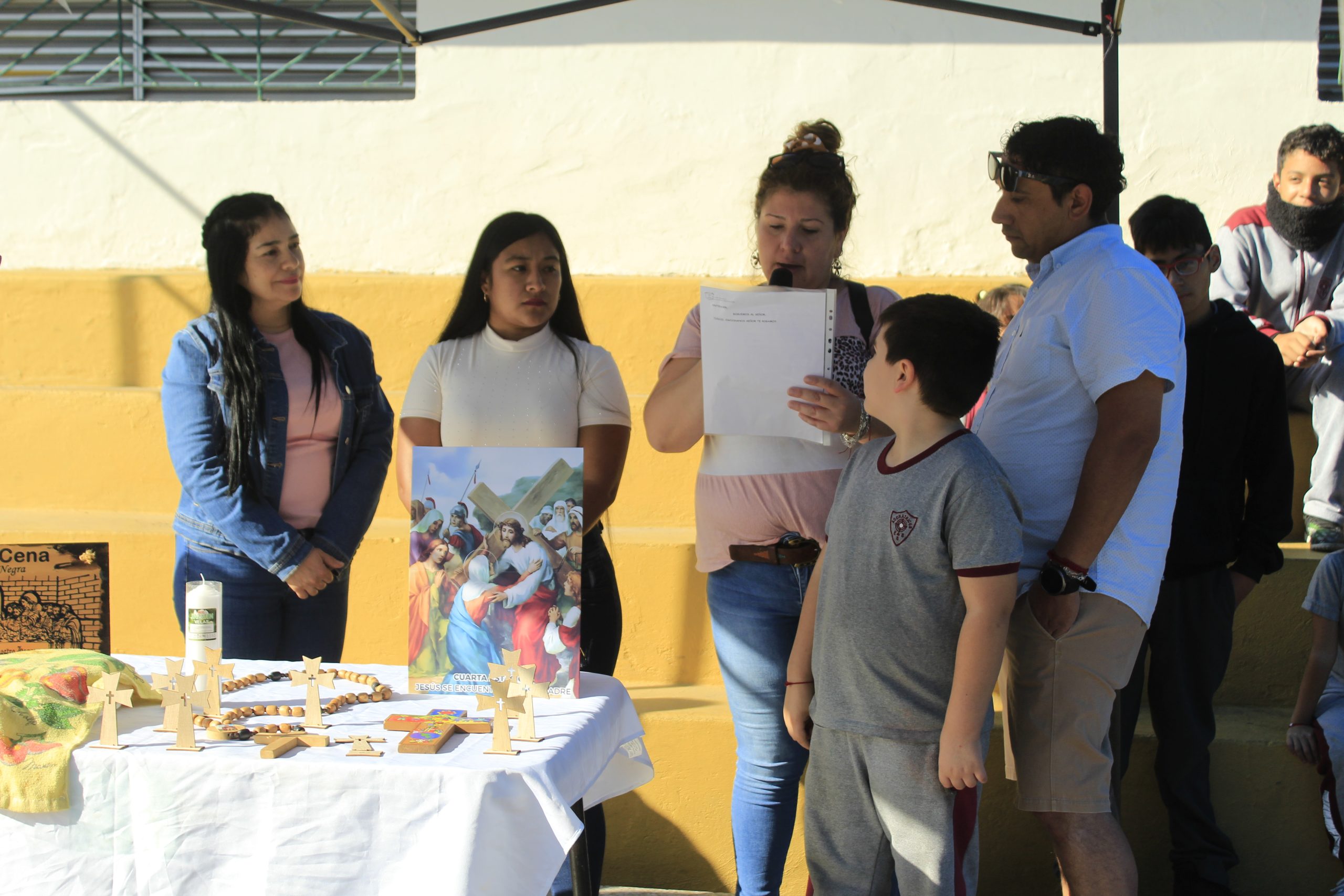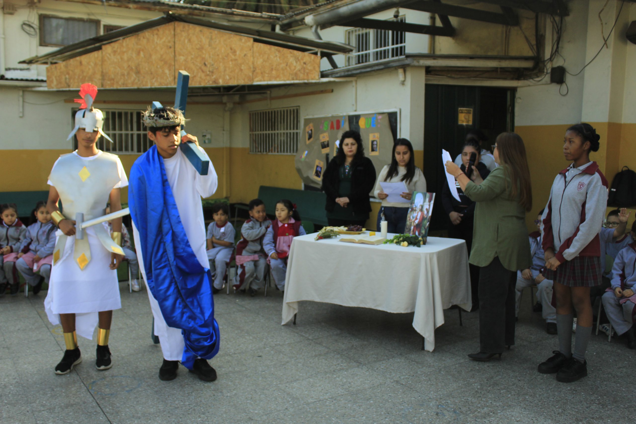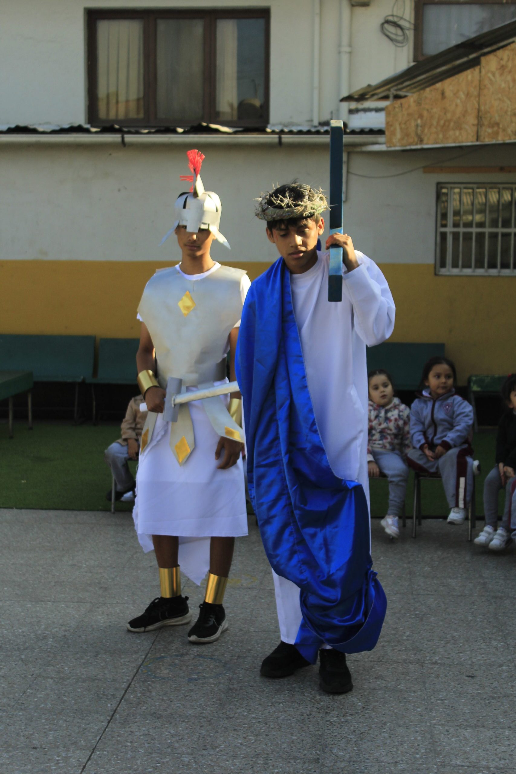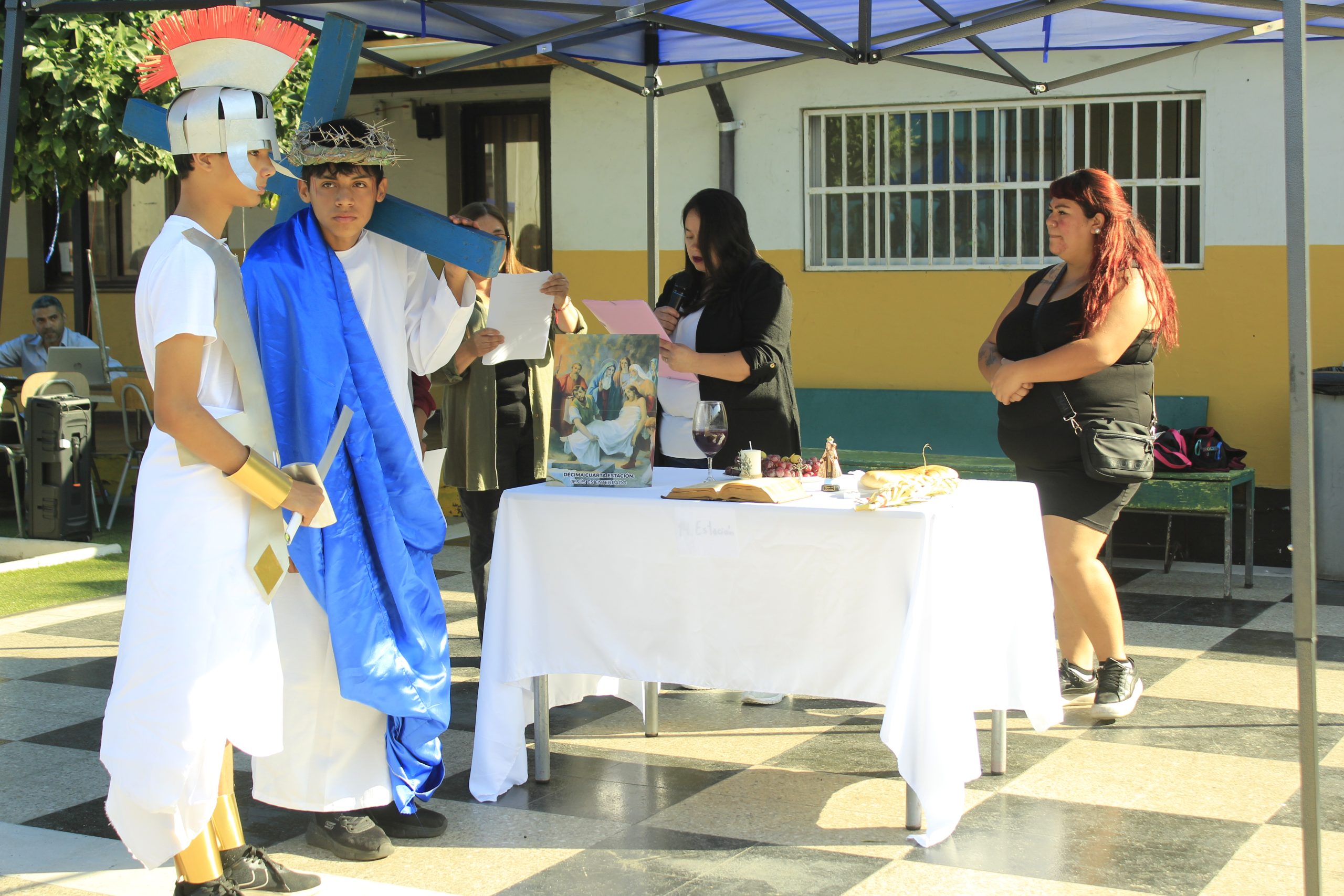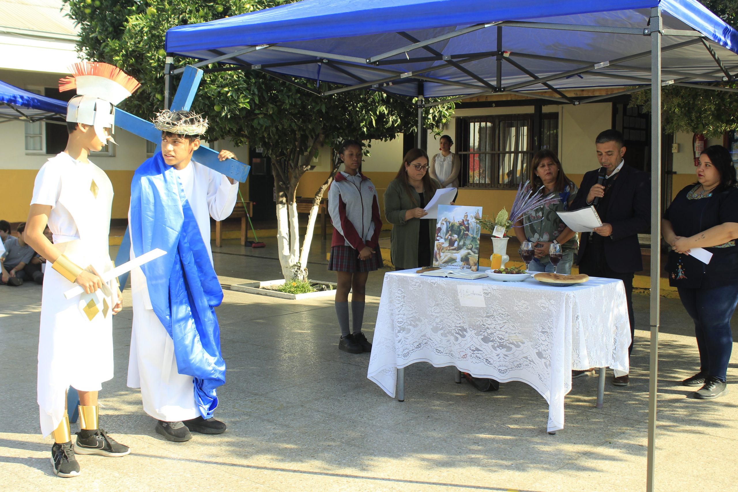 En el marco de la celebración de la Semana Santa, nuestra comunidad educativa vivió una significativa jornada de reflexión a través de la representación del Vía Crucis. En esta actividad, cada curso y los distintos estamentos de la escuela asumieron con compromiso y respeto la preparación de una de las estaciones de Jesucristo, promoviendo el trabajo colaborativo, la empatía y el sentido de comunidad. Este espacio permitió a nuestros estudiantes y funcionarios conectar con el mensaje de amor, sacrificio y esperanza, fortaleciendo los valores que nos unen como comunidad educativa.