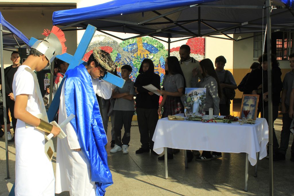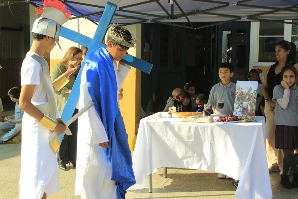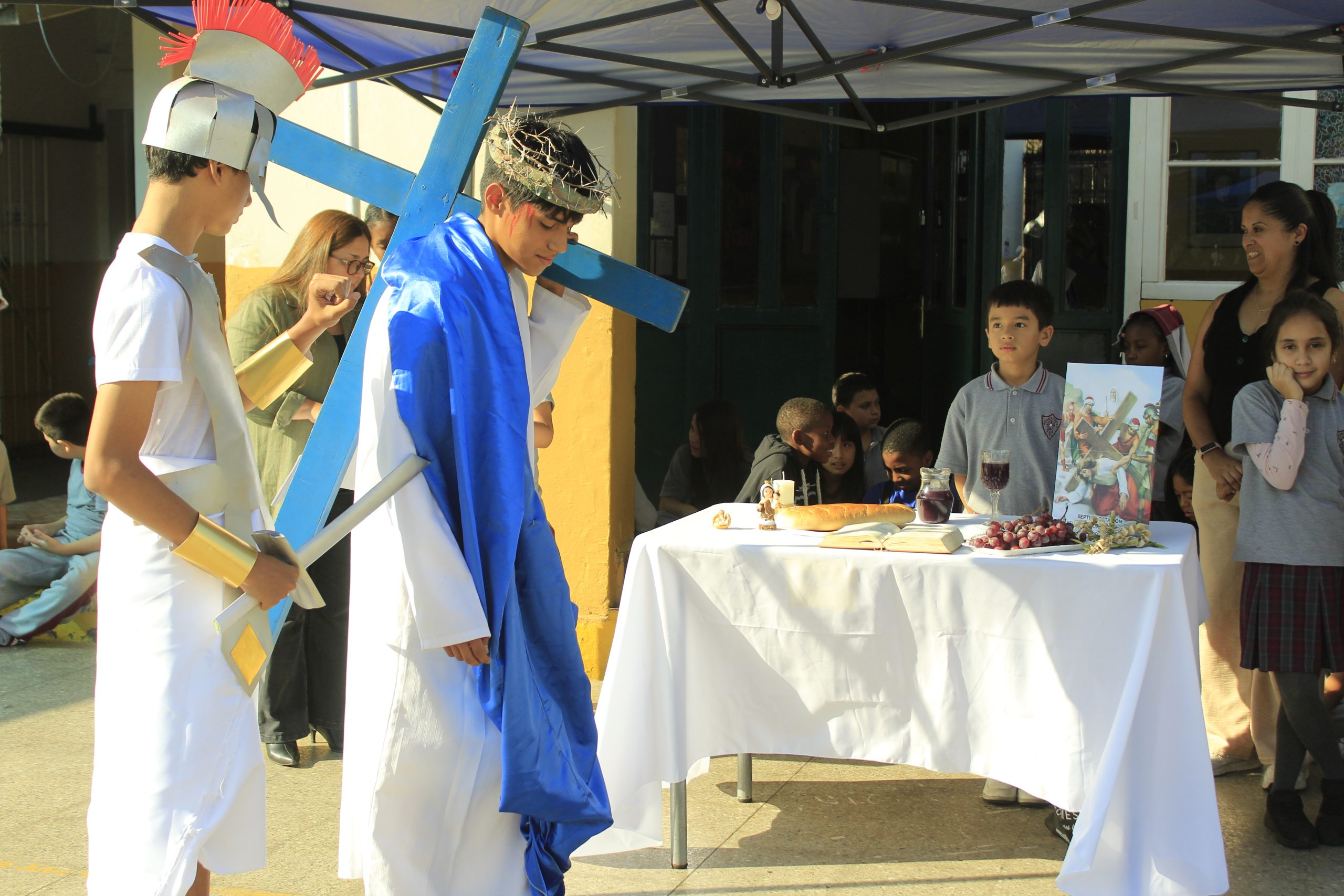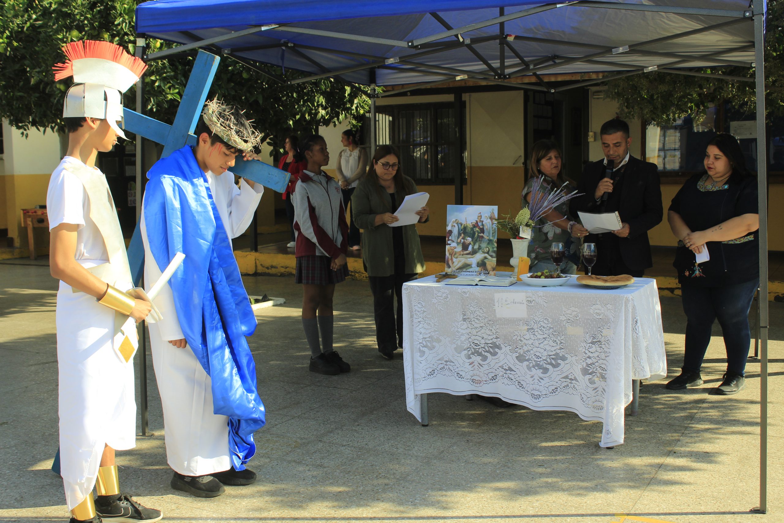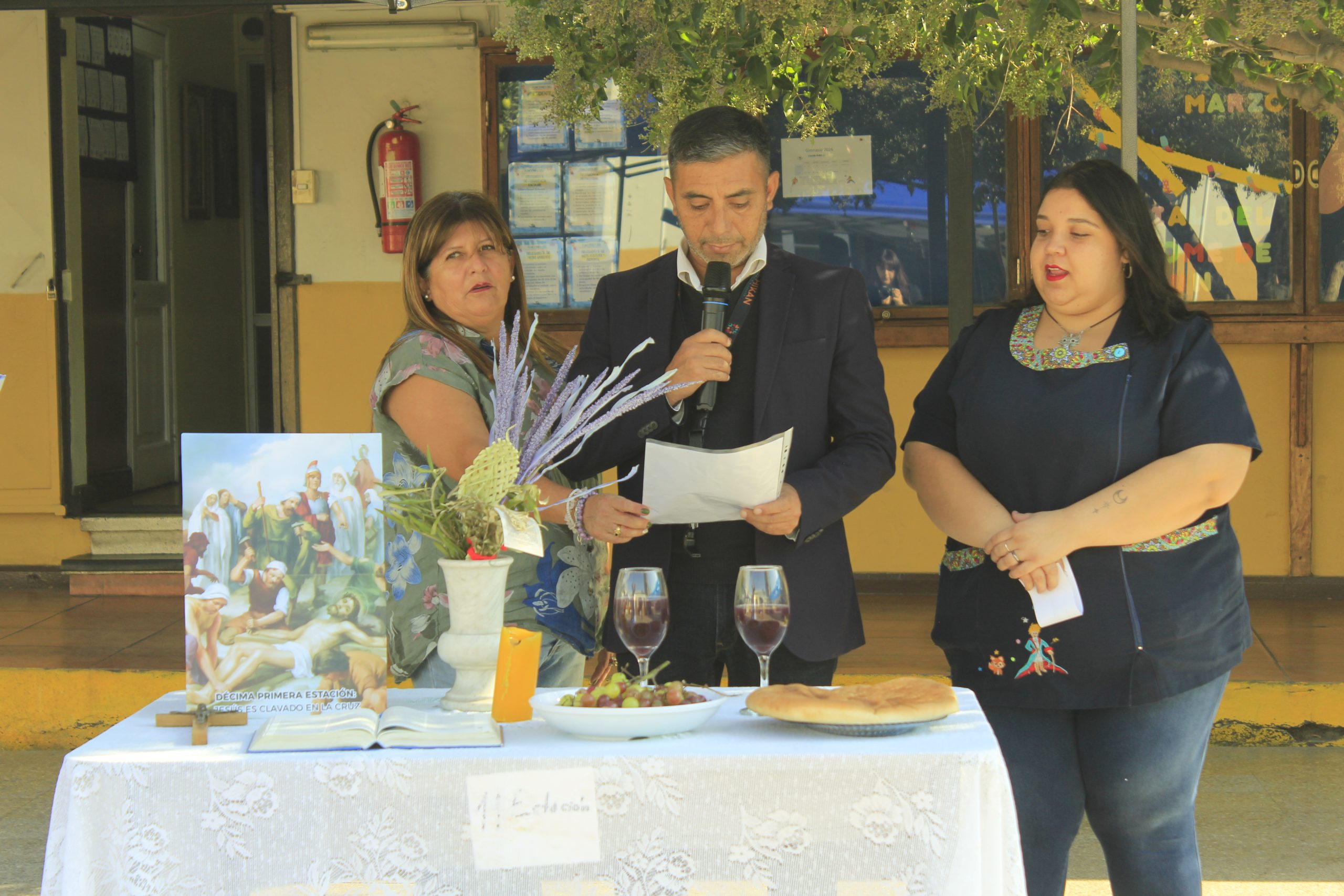En el marco de la celebración de la Semana Santa, nuestra comunidad educativa vivió una significativa jornada de reflexión a través de la representación del Vía Crucis. En esta actividad, cada curso y los distintos estamentos de la escuela asumieron con compromiso y respeto la preparación de una de las estaciones de Jesucristo, promoviendo el trabajo colaborativo, la empatía y el sentido de comunidad. Este espacio permitió a nuestros estudiantes y funcionarios conectar con el mensaje de amor, sacrificio y esperanza, fortaleciendo los valores que nos unen como comunidad educativa.